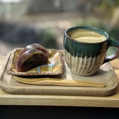 ・ドリンクセットA(コーヒーorオレンジジュースorりんごジュース+団子(あんこ)皿)¥550